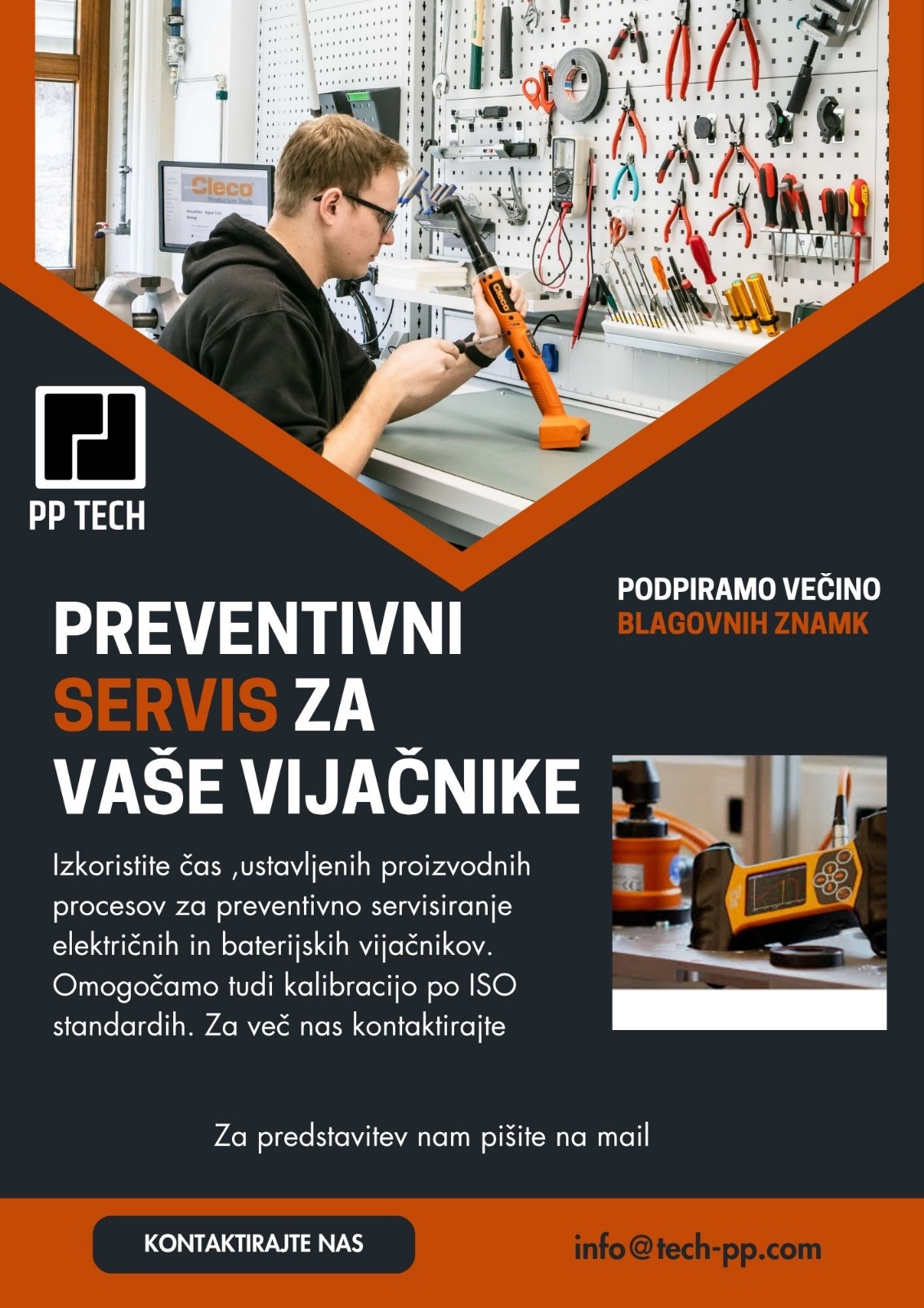 Ste vedeli, da redno preventivno vzdrževanje električnih in baterijskih vijačnikov lahko podaljša njihovo življenjsko dobo ter zmanjša tveganje za zastoje v proizvodnji? V podjetju PP TECH izvajamo preventivne servise ter kalibracije po ISO standardih za večino blagovnih znamk vijačnikov.Naša ekipa strokovnjakov poskrbi, da so vaša orodja vedno v optimalnem stanju – pripravljena na zanesljivo in […]
